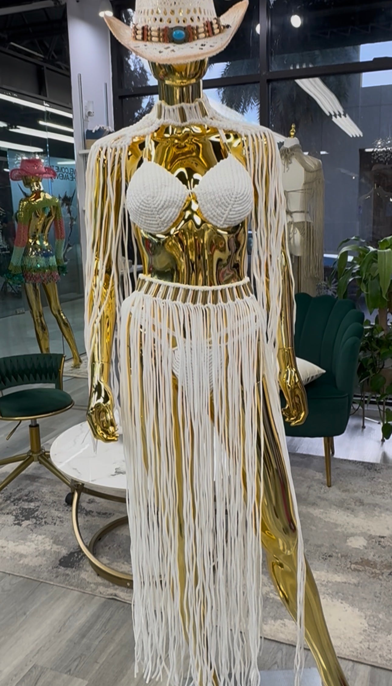 Macrame fabric. four pieces, skirt, top, panty, Capa